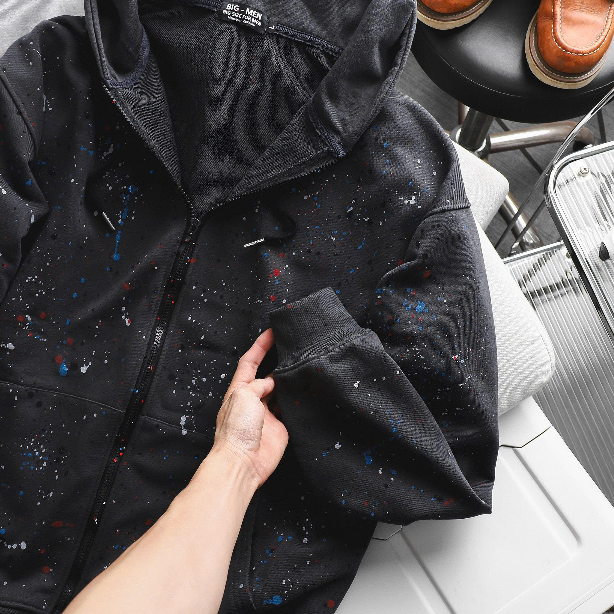 - Thiết kế: Họa tiết phun sơn độc đáo, mang phong cách Streetwear cực ngầu, giúp anh em nổi bật và cá tính hơn.