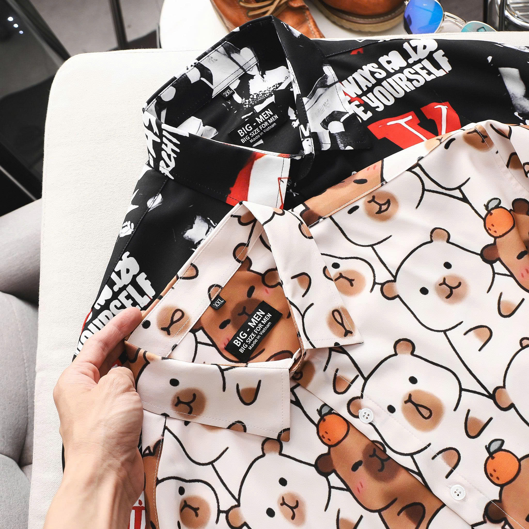 - Chiều cao trung bình 1M72- 1M75, khách thấp hơn 1m7, bụng bia to thiệt nhiều, chọn tăng 1 size cho thoải mái hoặc ib shop tư vấn.