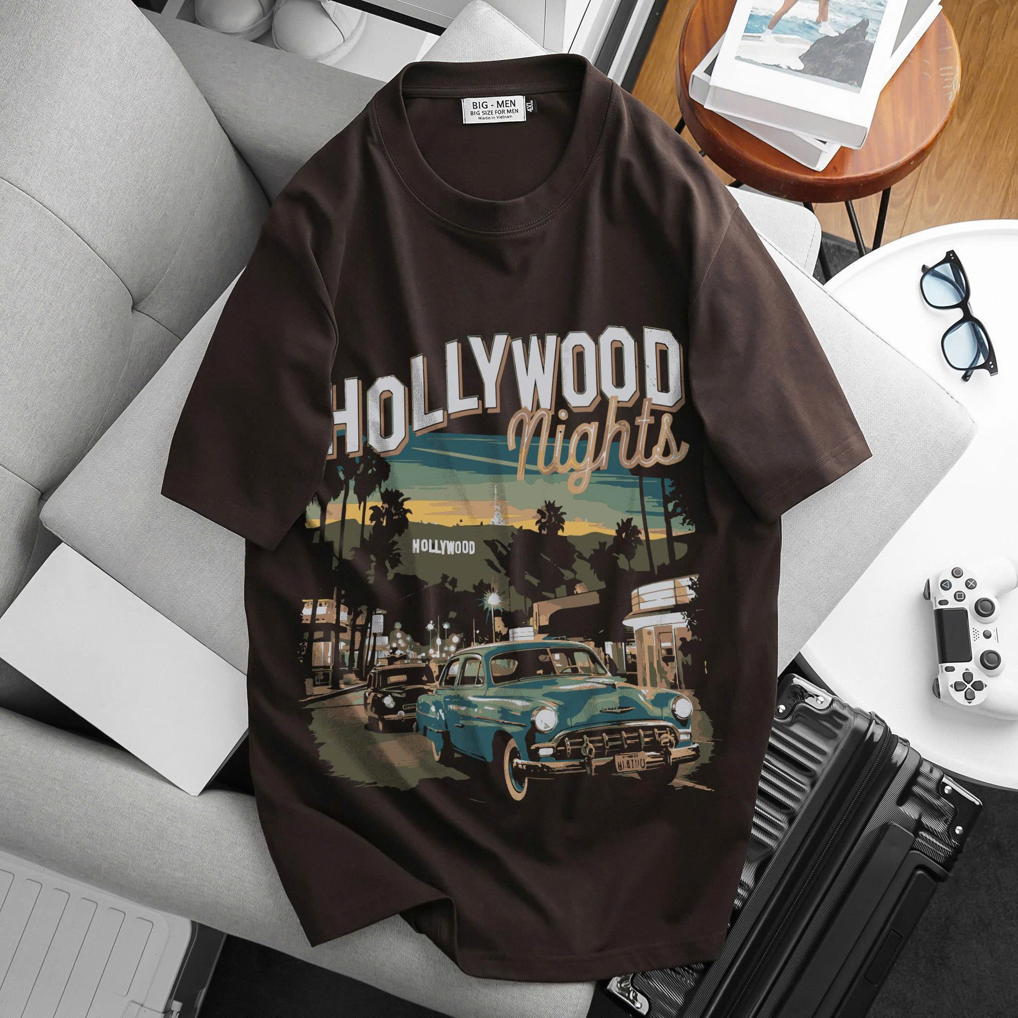 [ Big Size 55- 135 kg] Áo thun cotton bigsize nam in Hollywood thời trang Big Men