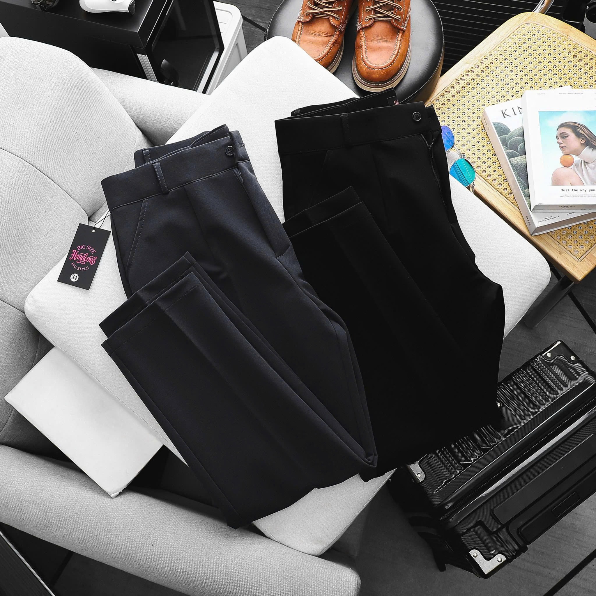 Chất vải Hong Kong co giãn nhẹ, form nữ ống suông, cạp cao.