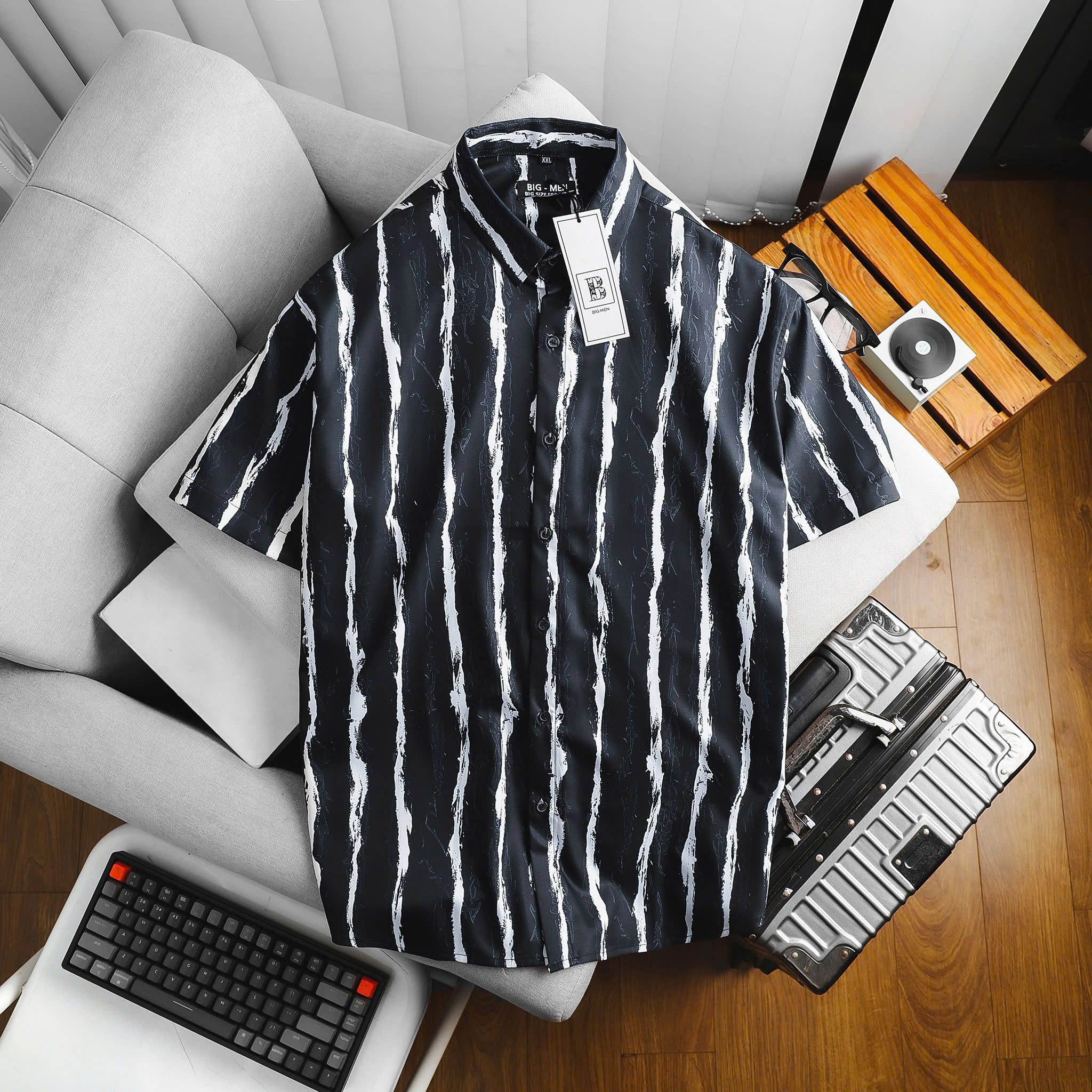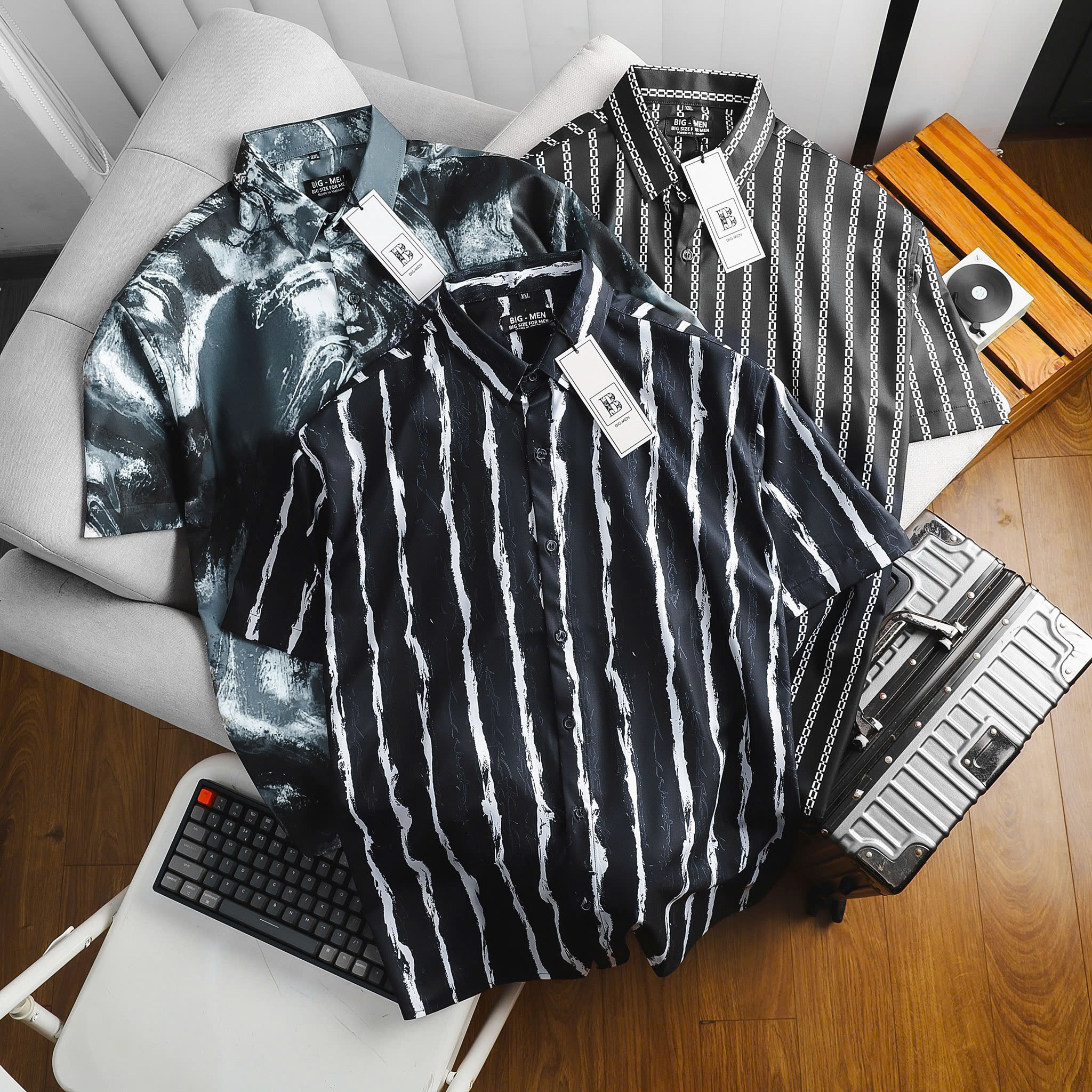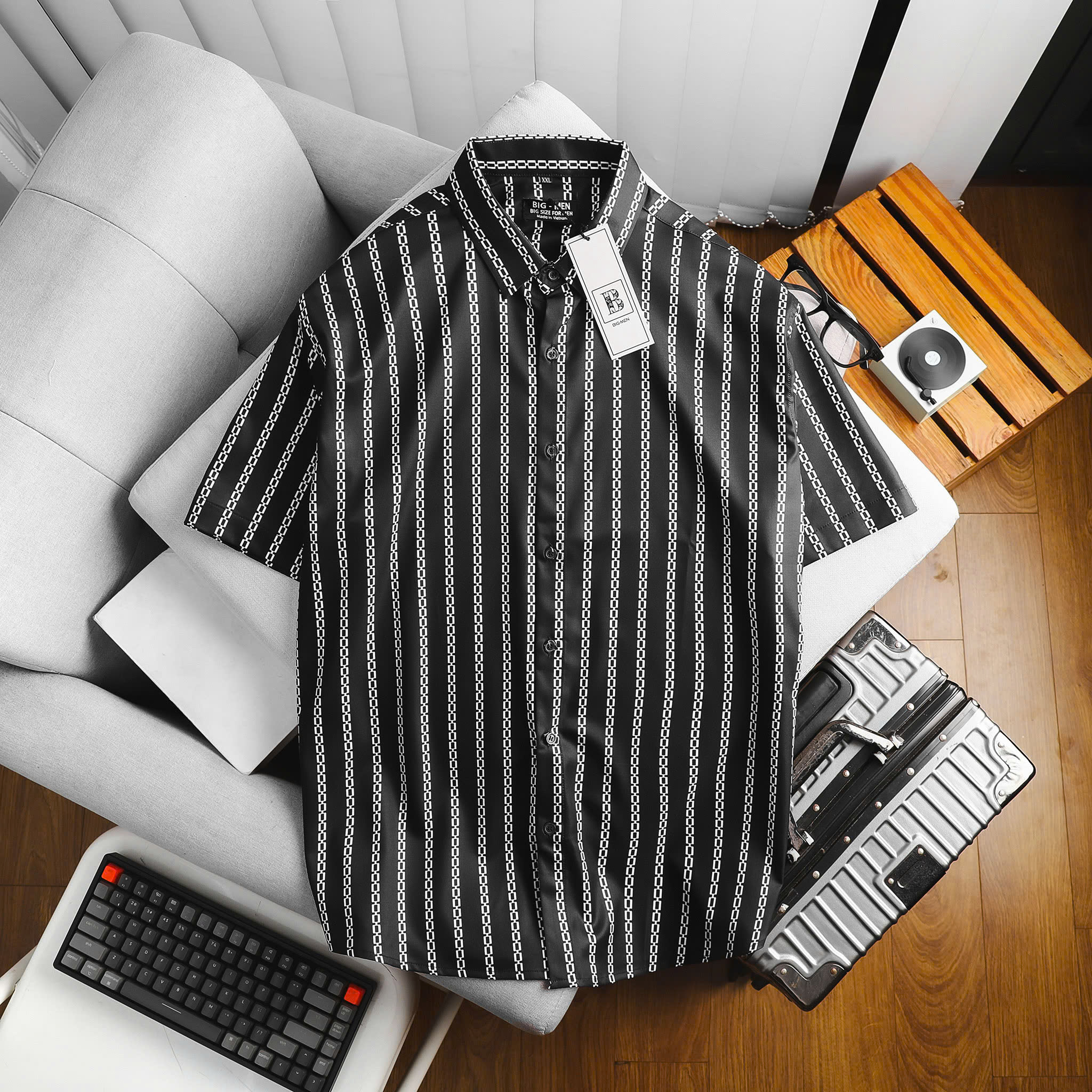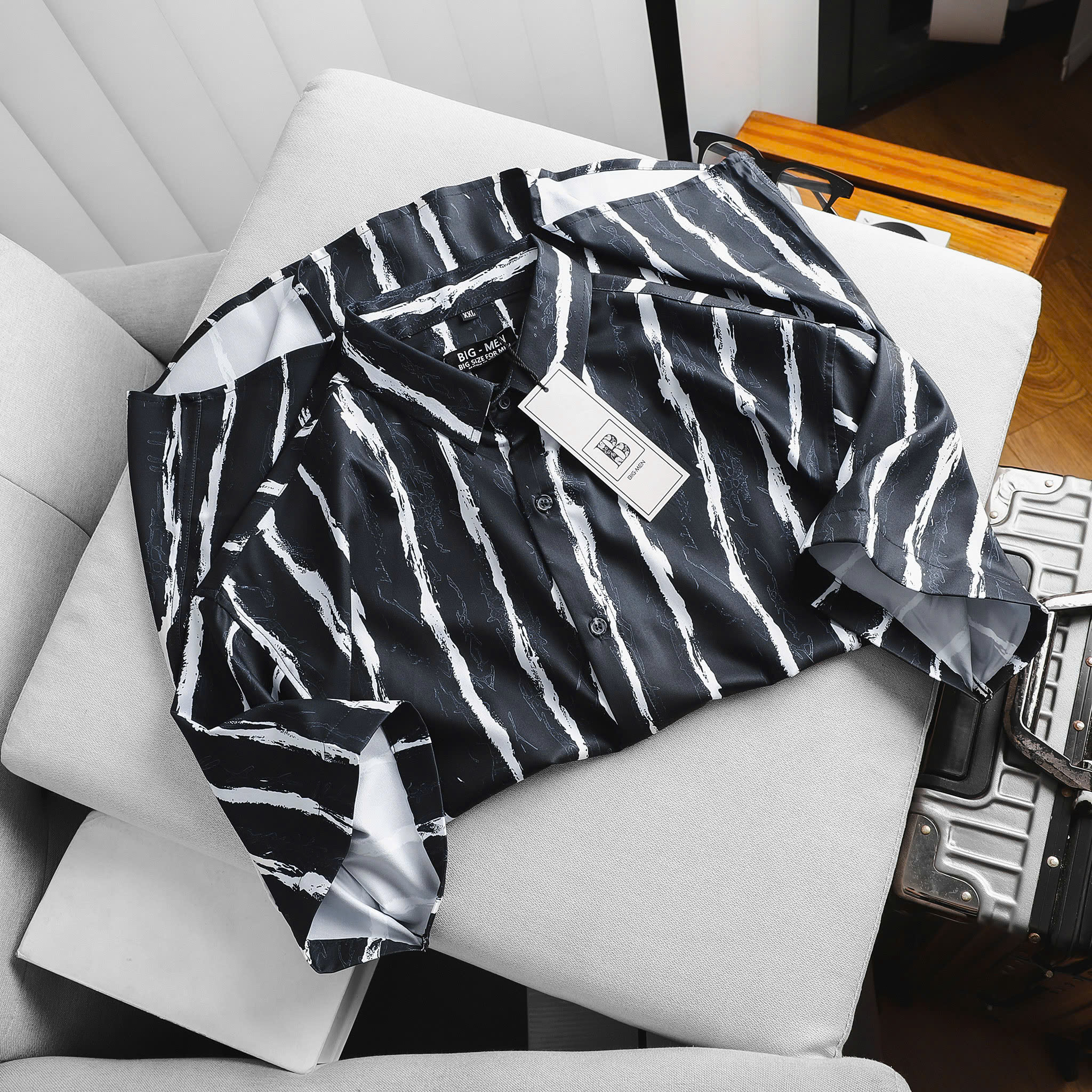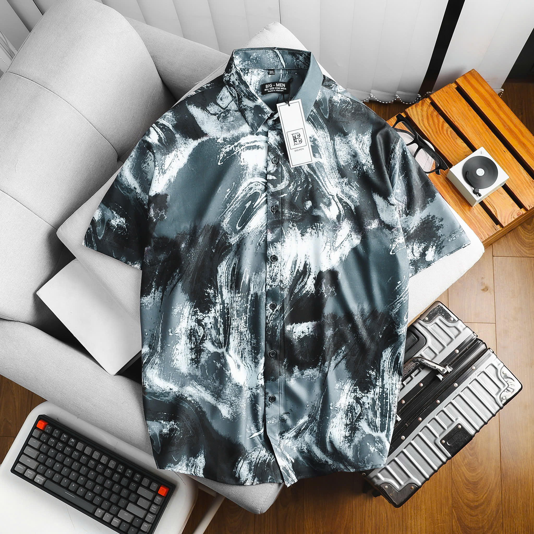 [bigsizemen] Áo sơ mi tay ngắn họa tiết bigsize nam cỡ đại 140kg